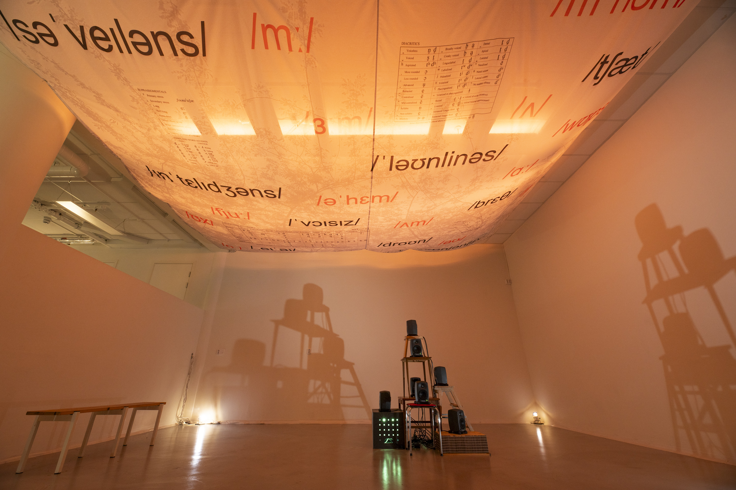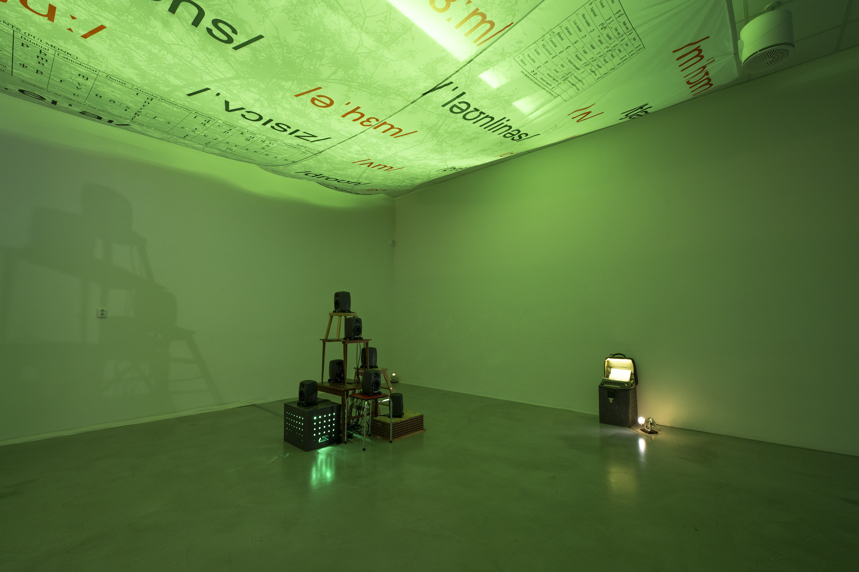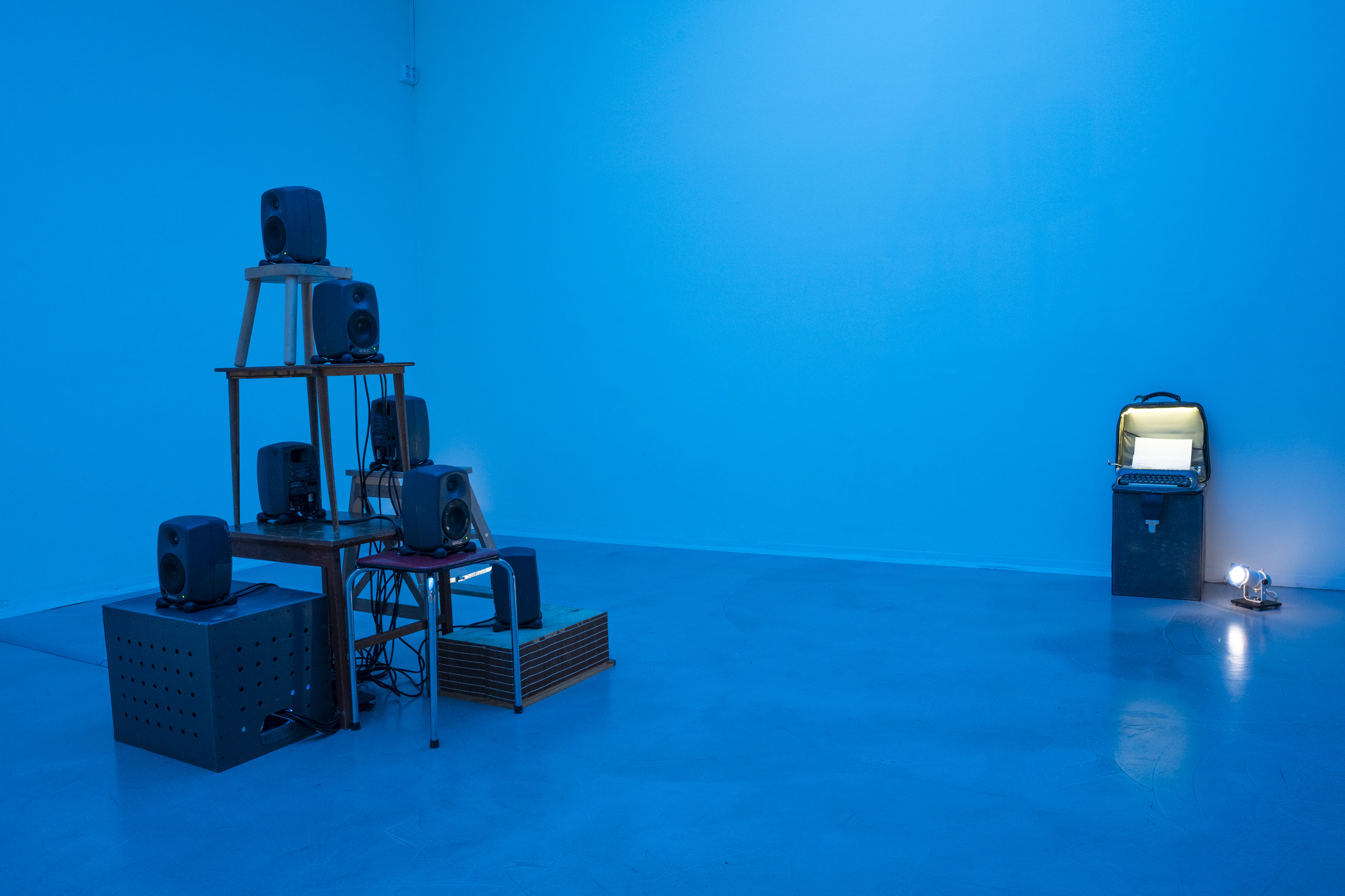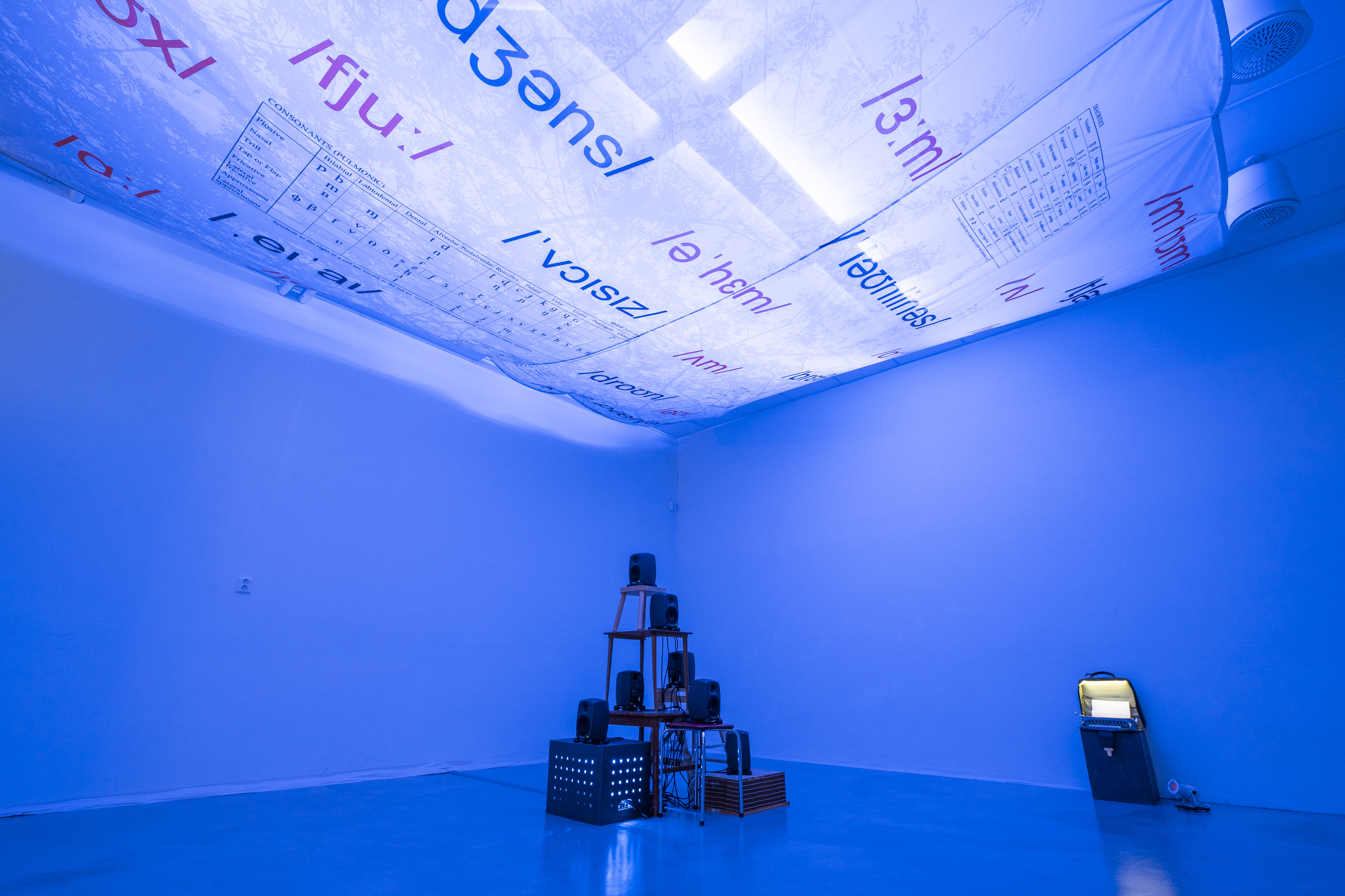 7-channel sound installation, textile (570x480cm), typewriter, and performance (30 min)